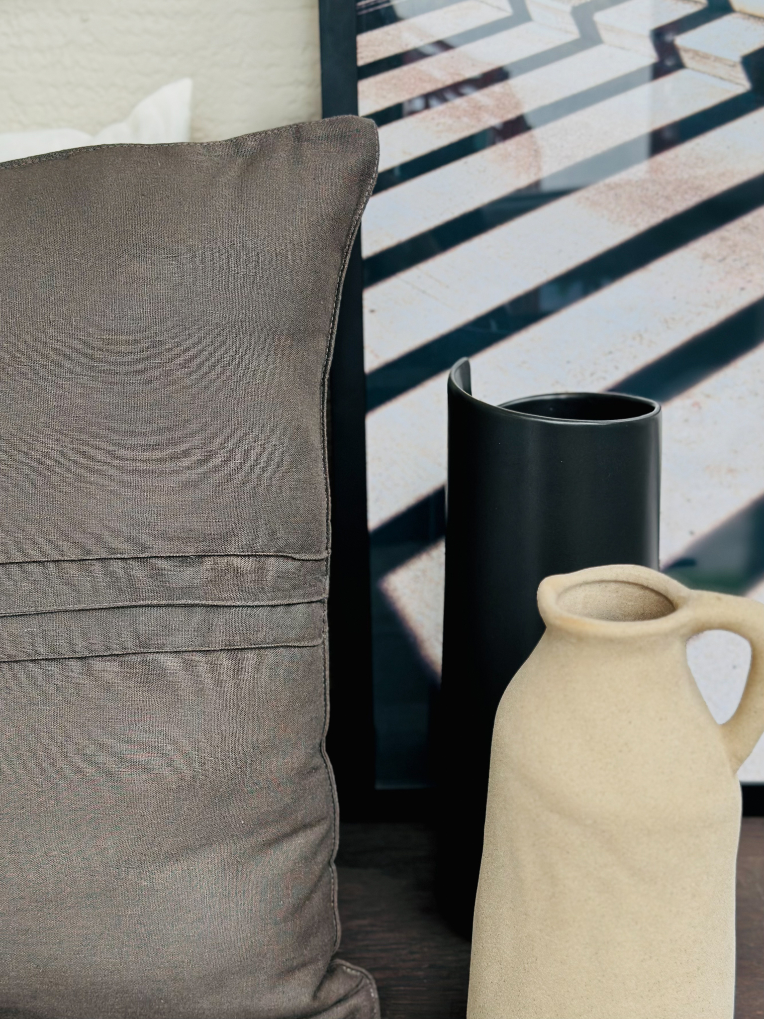 A almofada Rio de Janeiro, confeccionada em linho marrom com detalhes de nervuras, mede 50 x 50 cm. Seu design versátil e sofisticado é perfeito para adicionar um toque de elegância à sua decoração, proporcionando um charme carioca e uma sensação acolhedora ao seu espaço.