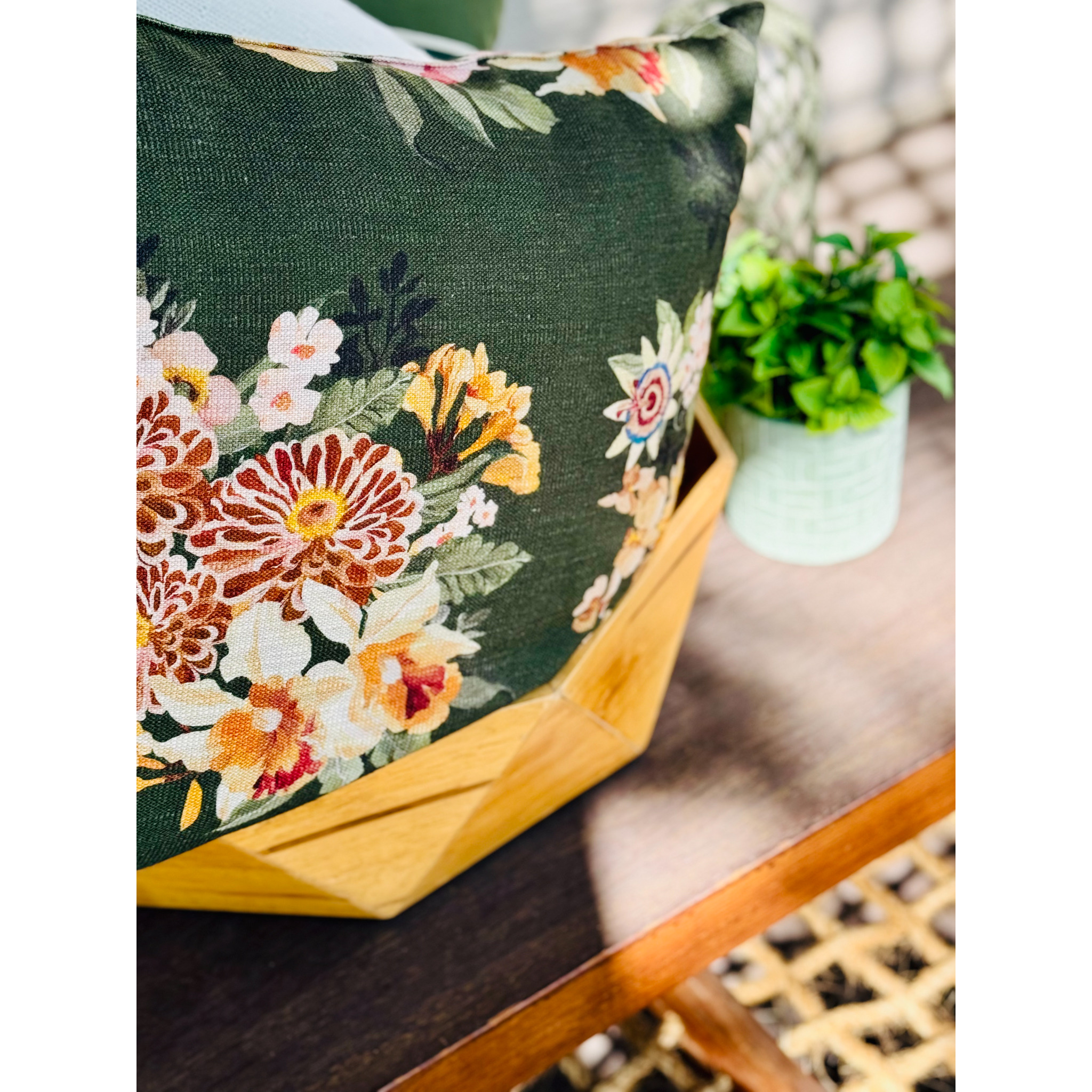 A almofada Amalfi, com suas medidas de 50 x 50 cm, é uma peça confeccionada em tecido verde escuro adornado por um vibrante padrão floral em tons de amarelo, laranja e rosa. Esta almofada evoca a beleza dos jardins mediterrâneos e traz um toque de frescor e cor a qualquer ambiente. Transforme seu espaço com a elegância e o charme da almofada Amalfi e desfrute de seu design exuberante e acolhedor.