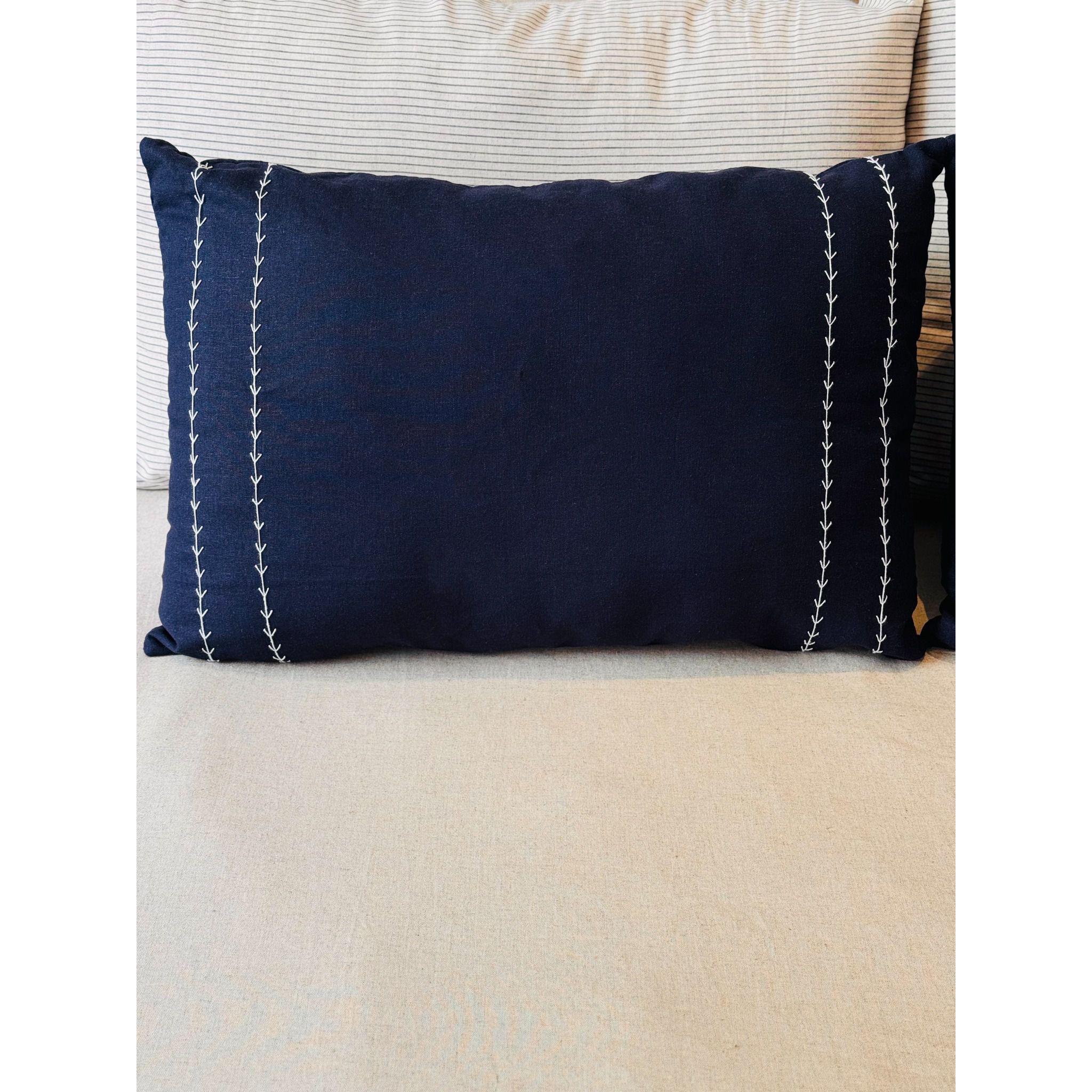 A almofada Cris é o complemento ideal para a peseira Cris, oferecendo um toque de elegância ao seu ambiente. Confeccionada em linho marinho e adornada com delicados bordados brancos feitos à mão, esta almofada proporciona um charme único. Suas medidas de 40x60cm garantem um tamanho ideal para adicionar conforto e estilo à sua decoração.