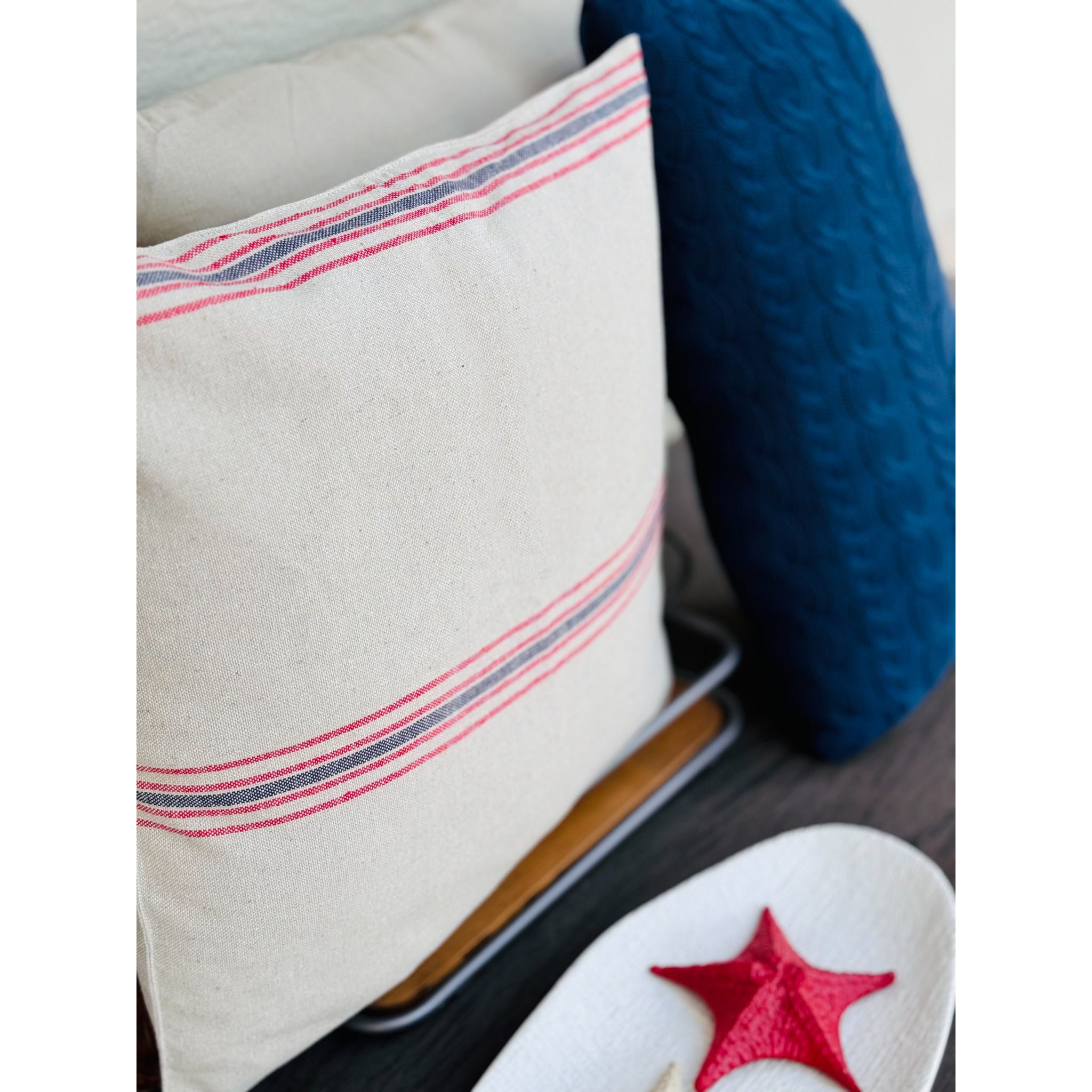 A almofada Garda, com suas medidas de 50 x 50 cm, é a peça-chave para quem busca incorporar um charme náutico e sofisticado ao ambiente. Sua estampa listrada, em uma harmoniosa combinação de tons de vermelho e azul sobre fundo cru, evoca a serenidade e a beleza do mar, tornando-a perfeita para complementar decorações inspiradas no estilo náutico.