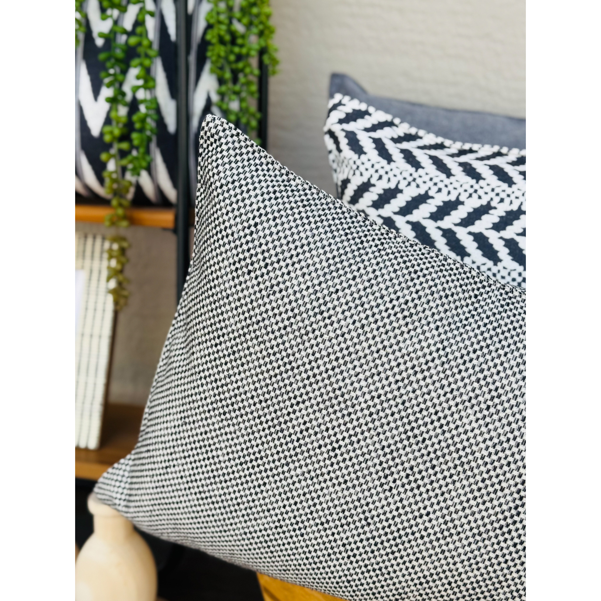 A almofada Geometria Urbana mede 35x50 cm e apresenta um padrão geométrico em preto e branco que confere um visual sofisticado e contemporâneo. O tecidoé macio ao toque, com uma textura que destaca a combinação de pequenas formas em um estilo discreto e elegante. A versatilidade de suas cores neutras permite que seja facilmente combinada com diferentes estilos de decoração, sendo ideal para dar um toque de modernidade em qualquer ambiente.