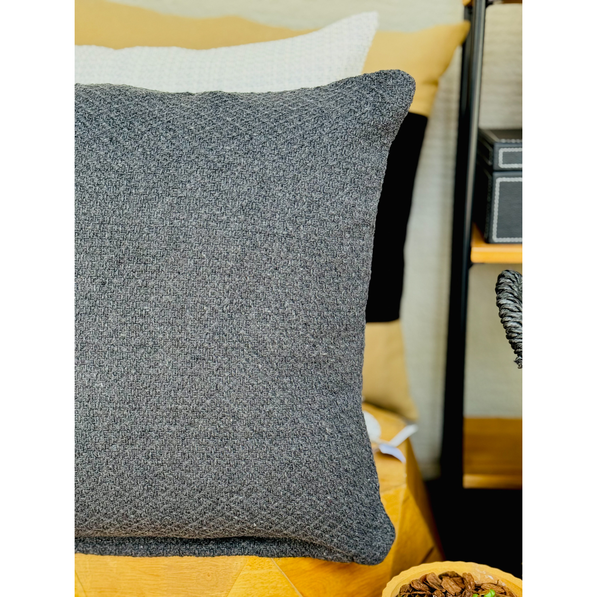 A almofada Granito, com suas dimensões de 43 x 43 cm, é confeccionada em tecido texturizado de tom cinza escuro. Seu design simples e sofisticado é perfeito para ambientes modernos ou clássicos, proporcionando conforto e estilo. Ideal para sofás, camas ou poltronas, a almofada Granito adiciona um toque de sobriedade e versatilidade à sua decoração.