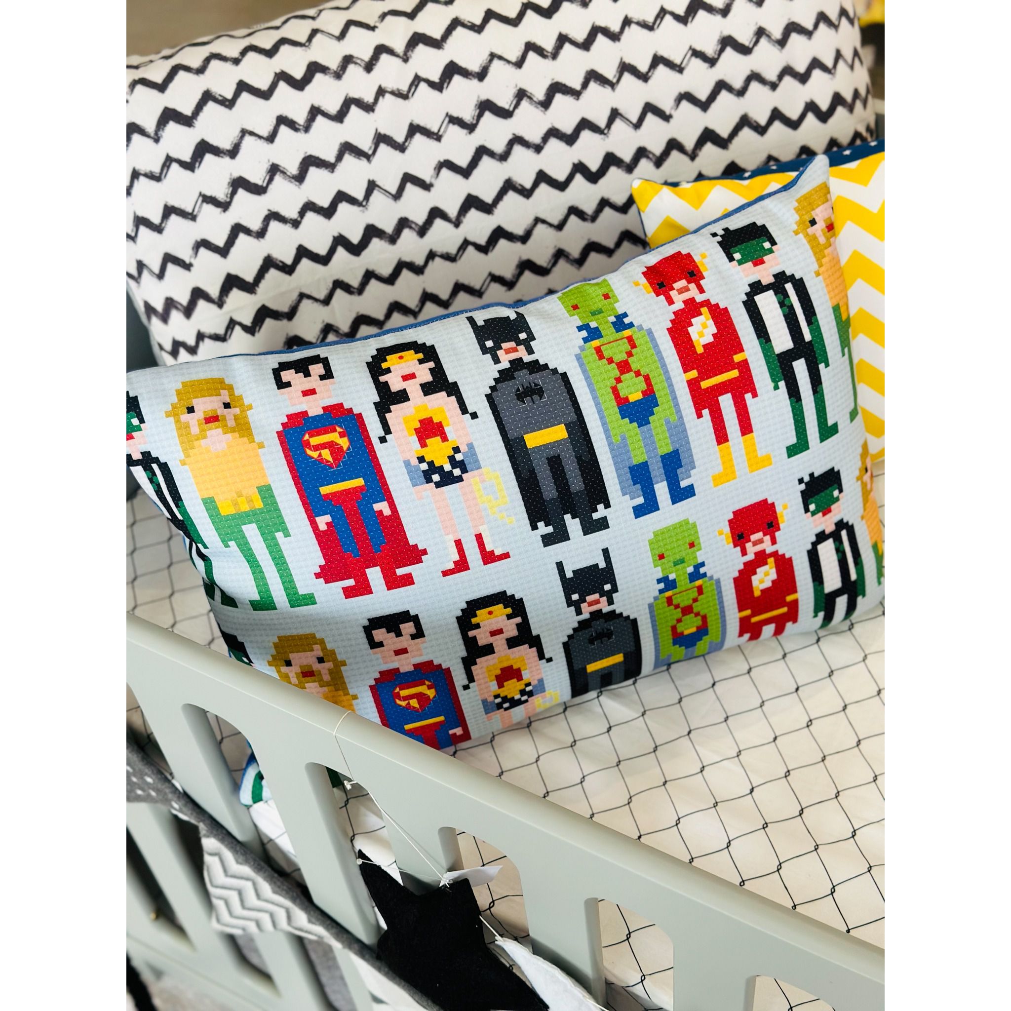 A Almofada Heróis da Milk Studio traz uma explosão de cores vibrantes e diversão para o quarto das crianças. Com estampas encantadoras de diversos heróis, esta almofada de 56 x 37 cm é a escolha perfeita para criar um ambiente alegre e estimulante.