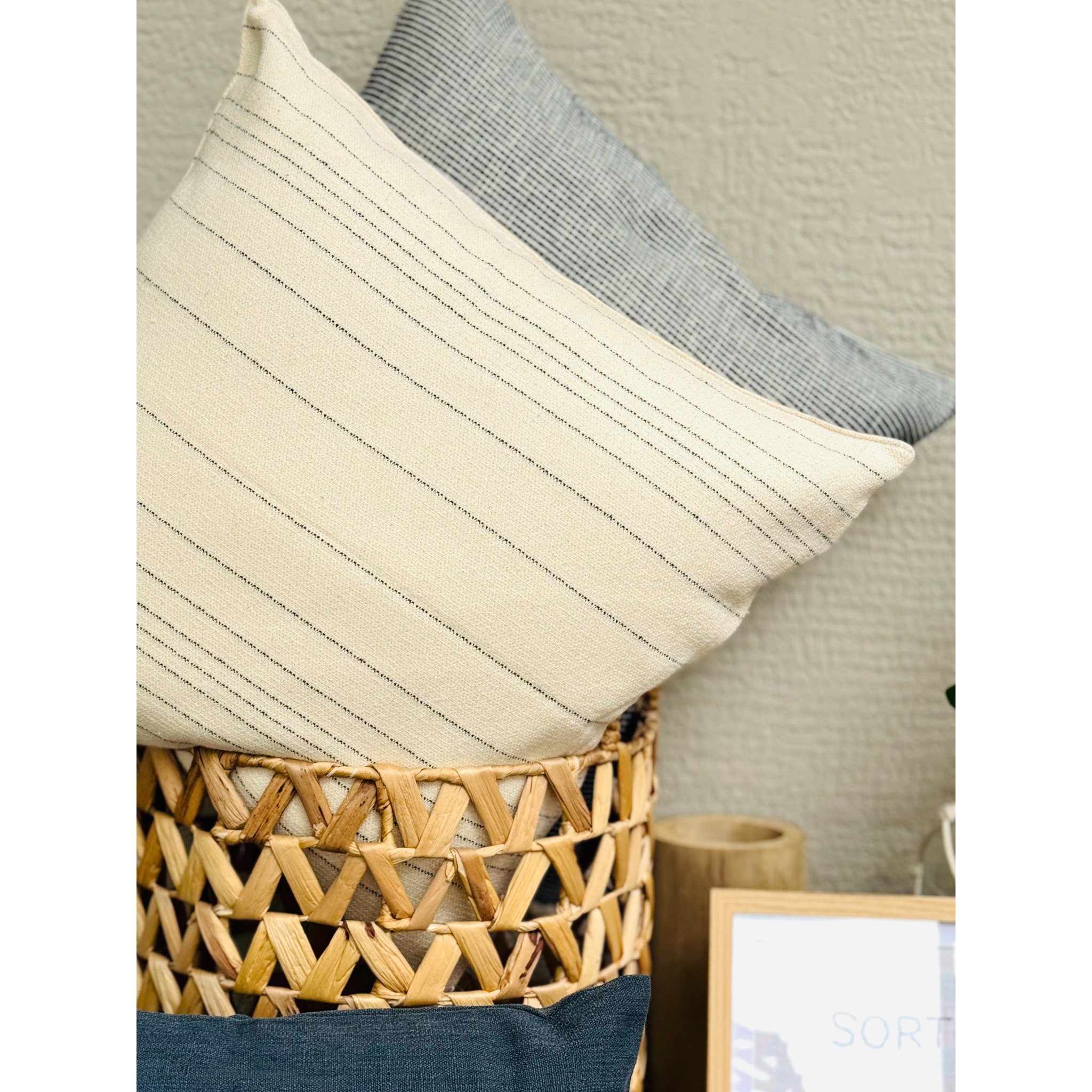 A Almofada Linhas, com medidas de 50x50 cm, é uma peça elegante e versátil que combina perfeitamente com diferentes estilos de decoração. Com um fundo off-white suave e detalhes de linhas finas e discretas marinho, ela adiciona um toque de modernidade e leveza ao seu ambiente.
