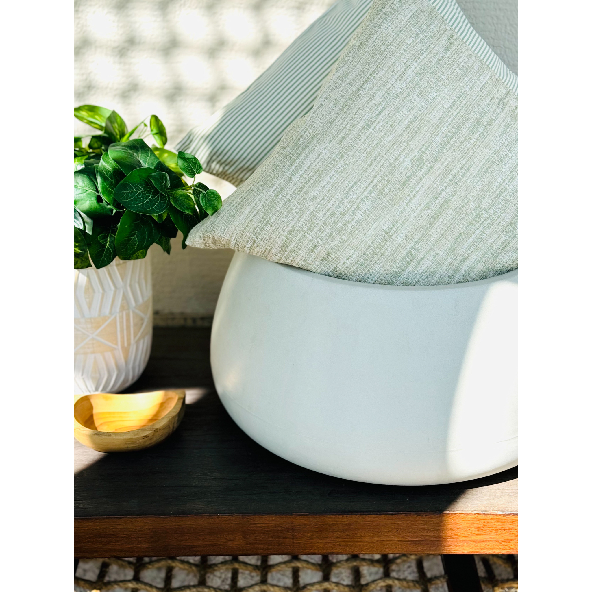 A almofada Londres, com suas medidas de 50 x 50cm, destaca-se pela sofisticação de seu tecido que pode ser usado tanto em áreas externas quanto internas. Ele apresenta uma mescla onde há tons de branco e verde, criando uma textura única. Inspirada na modernidade e elegância da cidade, esta almofada é a escolha perfeita para adicionar charme e delicadeza em sua decoração.