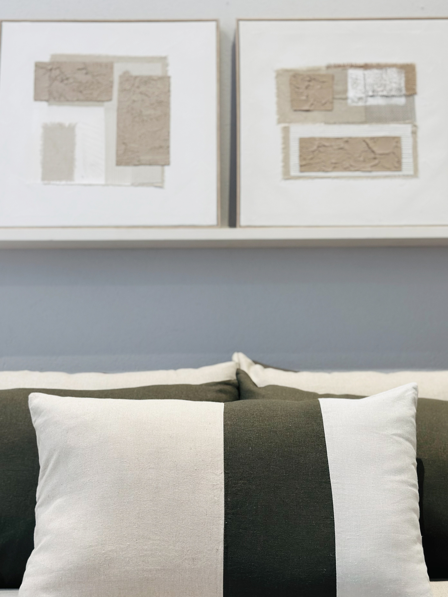 A Almofada Manaus é uma peça singular, confeccionada em linho de alta qualidade, que agrega sofisticação e estilo ao seu espaço. Com medidas de 40 x 60 cm, esta almofada apresenta três faixas distintas em tons de bege, cinza clarinho e verde musgo, criando um design moderno e versátil.