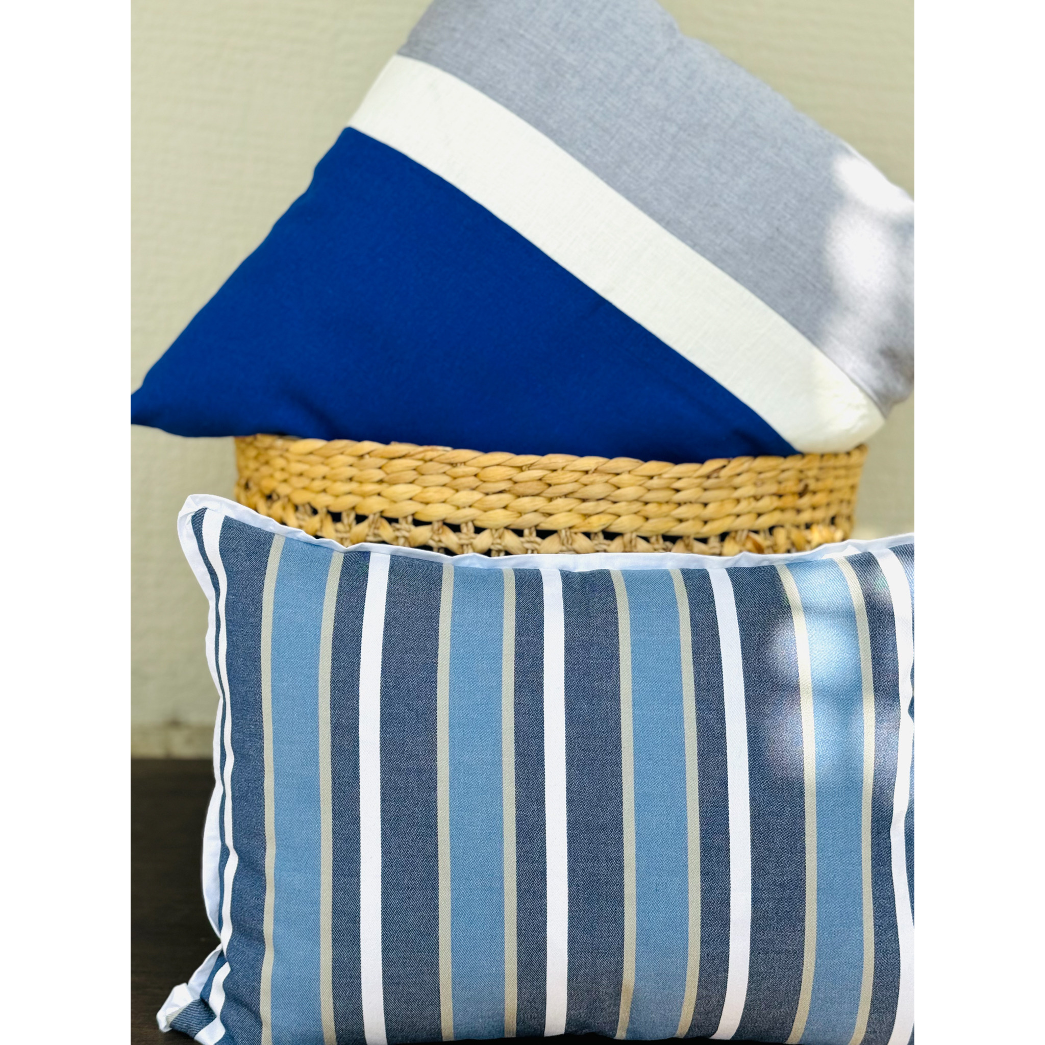 A almofada Marítima, com suas medidas de 35 x 50cm, é confeccionada em tecido listrado, apresentando uma combinação elegante de tons de azul, cinza e branco que evocam o ambiente costeiro. Seu design alongado é perfeito para adicionar um toque de sofisticação náutica a qualquer espaço, seja na sala de estar, no quarto ou na varanda. Versátil e estilosa, a almofada Marítima traz a tranquilidade e a frescura do mar para sua casa, complementando tanto decorações modernas quanto clássicas com seu charme atemporal.