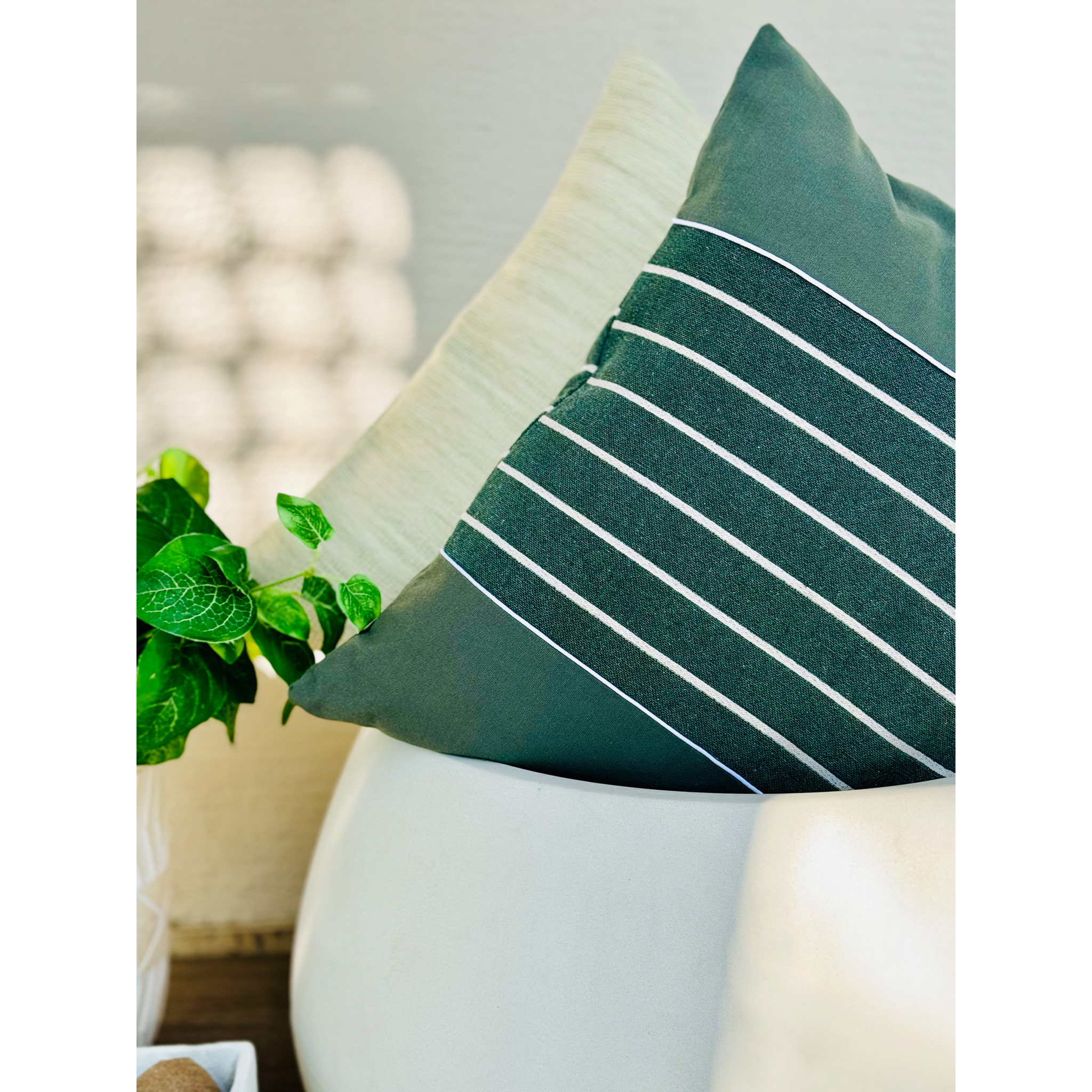A almofada Marrakesh, com suas medidas de 50 x 50 cm, é uma peça confeccionada em tecido verde musgo com listras finas em branco. Esta almofada combina elegância e simplicidade, perfeita para ambientes que buscam um toque de sofisticação e estilo atemporal. Transforme seu espaço com o charme exótico da almofada Marrakesh e desfrute de seu conforto e design elegante.