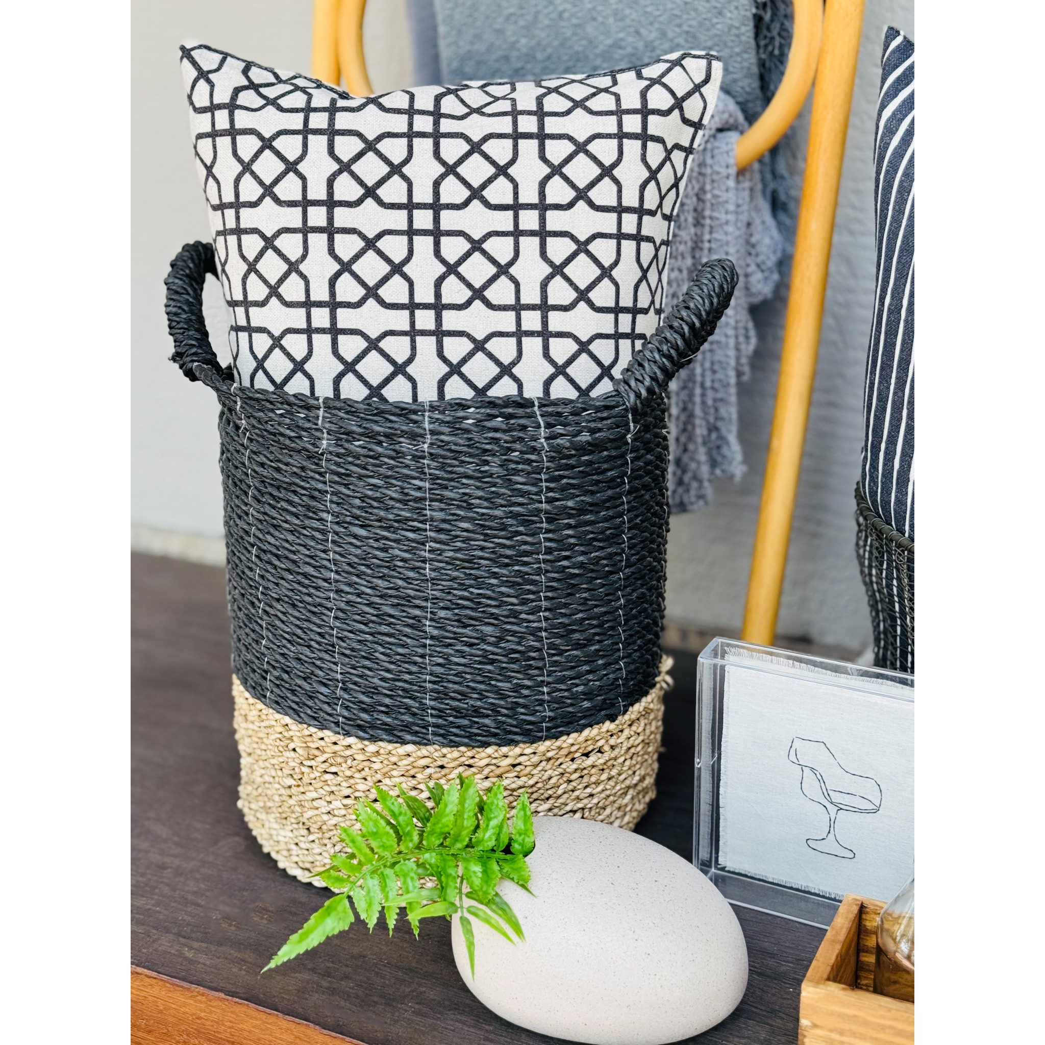 A almofada Nexus, com suas medidas de 35 x 50 cm, é confeccionada em tecido com padrão geométrico preto sobre fundo claro. Seu design contemporâneo e minimalista torna-se o destaque ideal para compor ambientes modernos e elegantes. Perfeita para trazer estilo e conforto ao seu espaço, a almofada Nexus é uma excelente opção para sofás, poltronas ou camas.