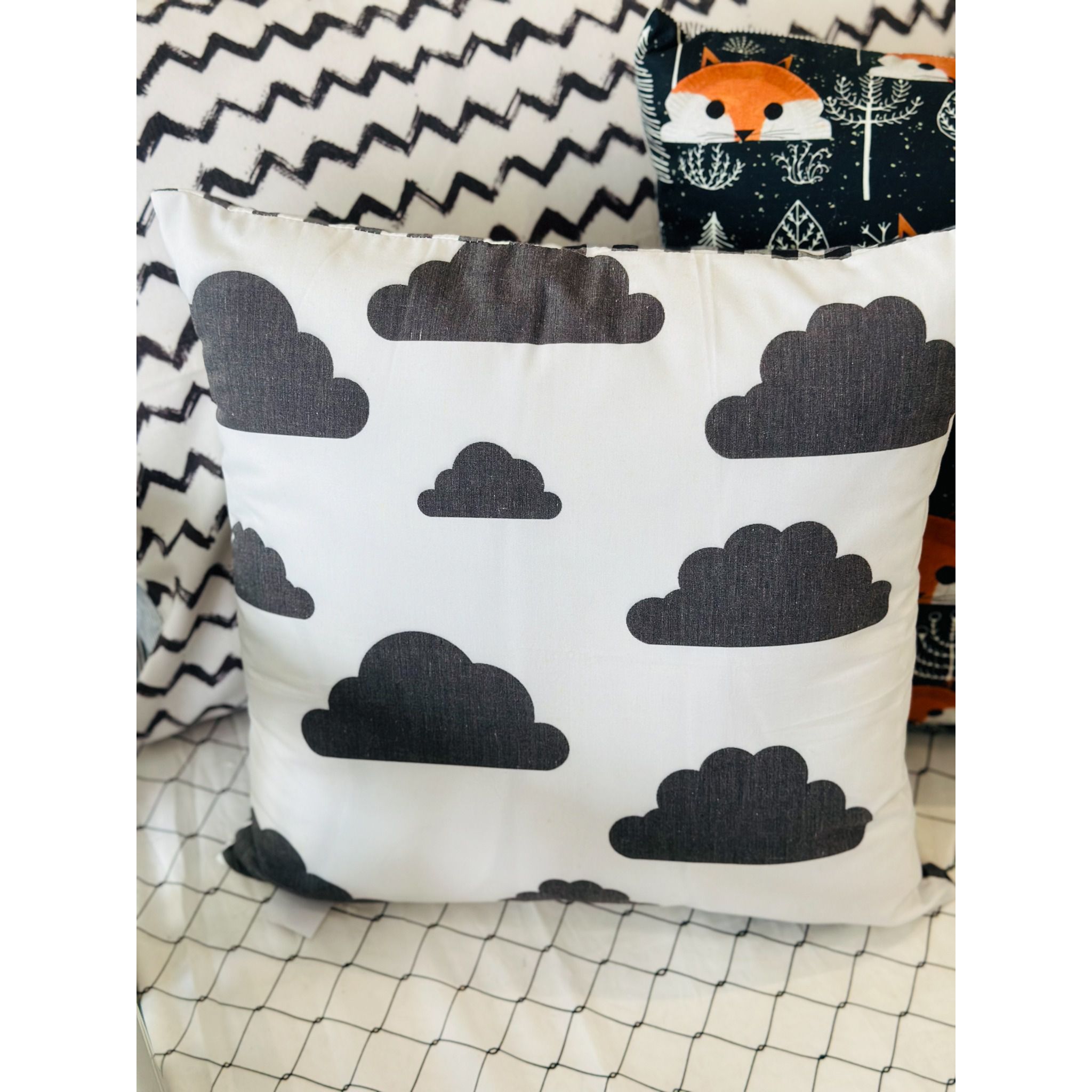 A Almofada Nuvem PB, de estampa da Milk Studio, traz um ar descolado para a sua decoração. Com nuvens pretas delicadamente estampadas em um fundo branco e um padrão Vichy preto e branco na parte de trás, esta almofada de 40 x 40 cm é uma peça versátil e estilosa para qualquer ambiente.