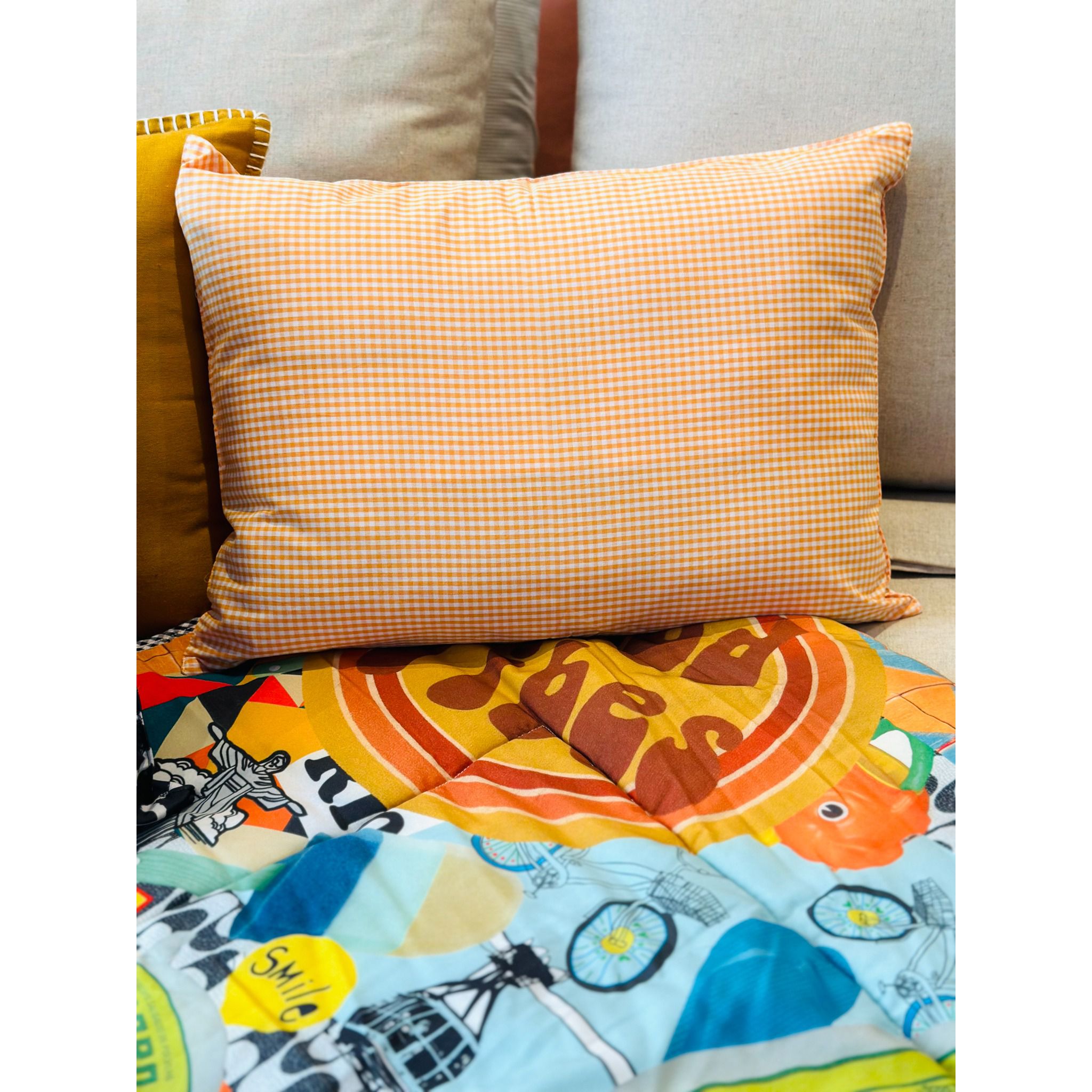 A Almofada Vichy Laranja é a escolha perfeita para adicionar um toque de alegria e estilo único ao quarto das crianças. Confeccionada em um algodão, essa almofada se destaca como um complemento encantador para sua decoração infantil.