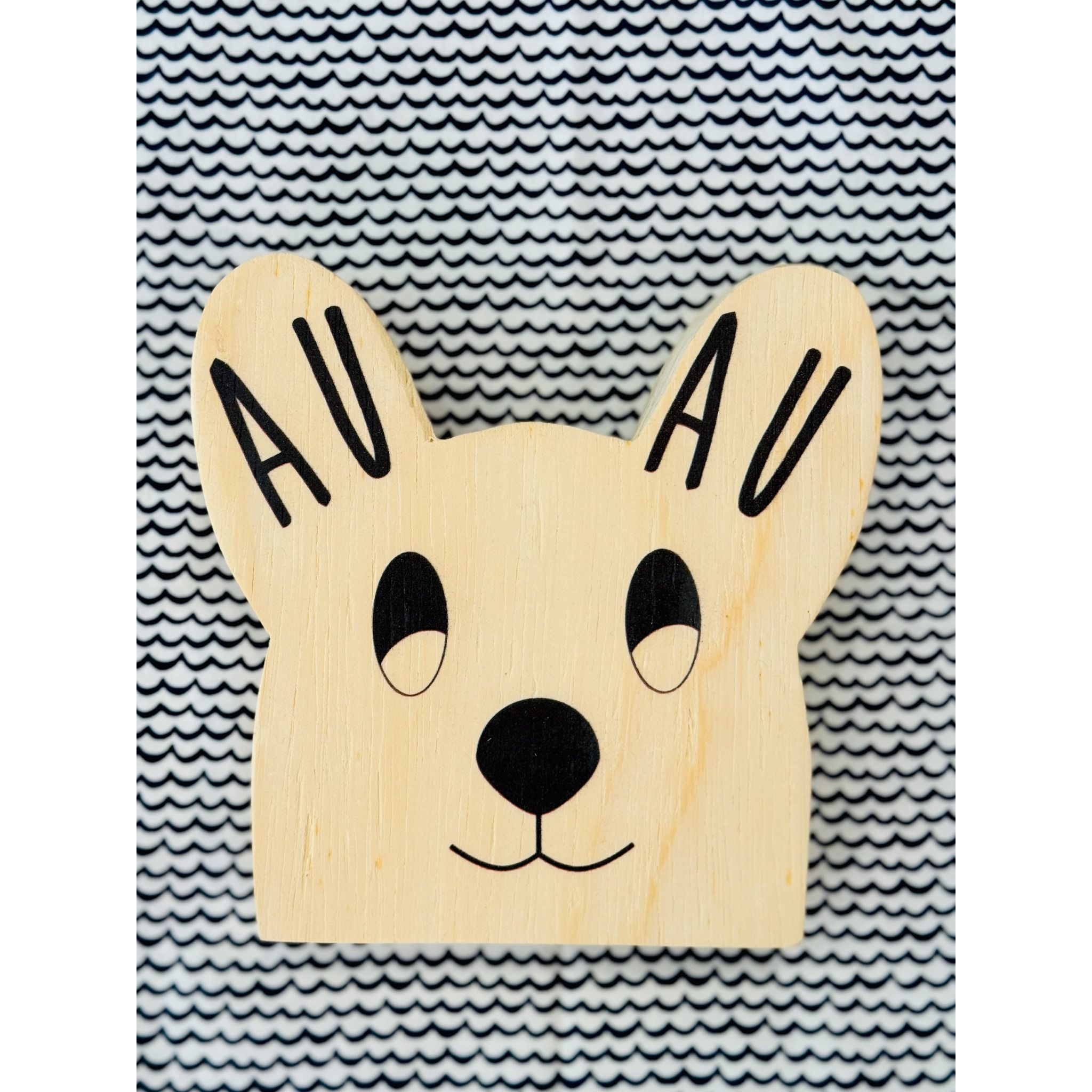 Conheça o Cachorrinho Au Au, uma peça decorativa encantadora que promete ser a nova atração no quarto das crianças. Com medidas de 14 x 14 x 3 cm, esta adorável figura é esculpida em madeira , mantendo a sua textura natural com detalhes em preto que destacam suas orelhas atentas e olhos expressivos.