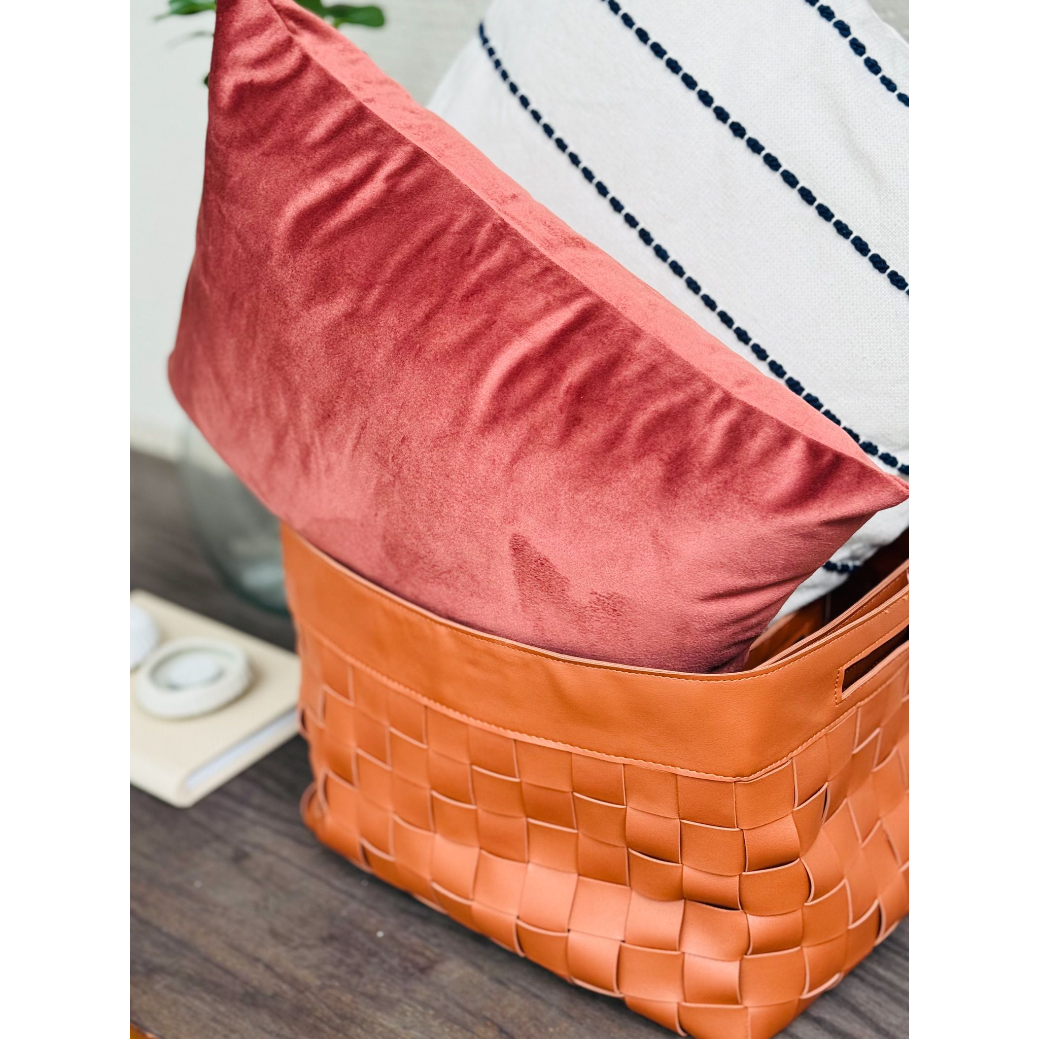Este cesto trançado destaca-se pela sua cor vibrante e pela habilidade artesanal evidente no seu entrelaçado. Versátil e estiloso, é ideal para armazenar objetos do dia a dia, adicionando charme a qualquer espaço. Medidas: 35lx28px23h