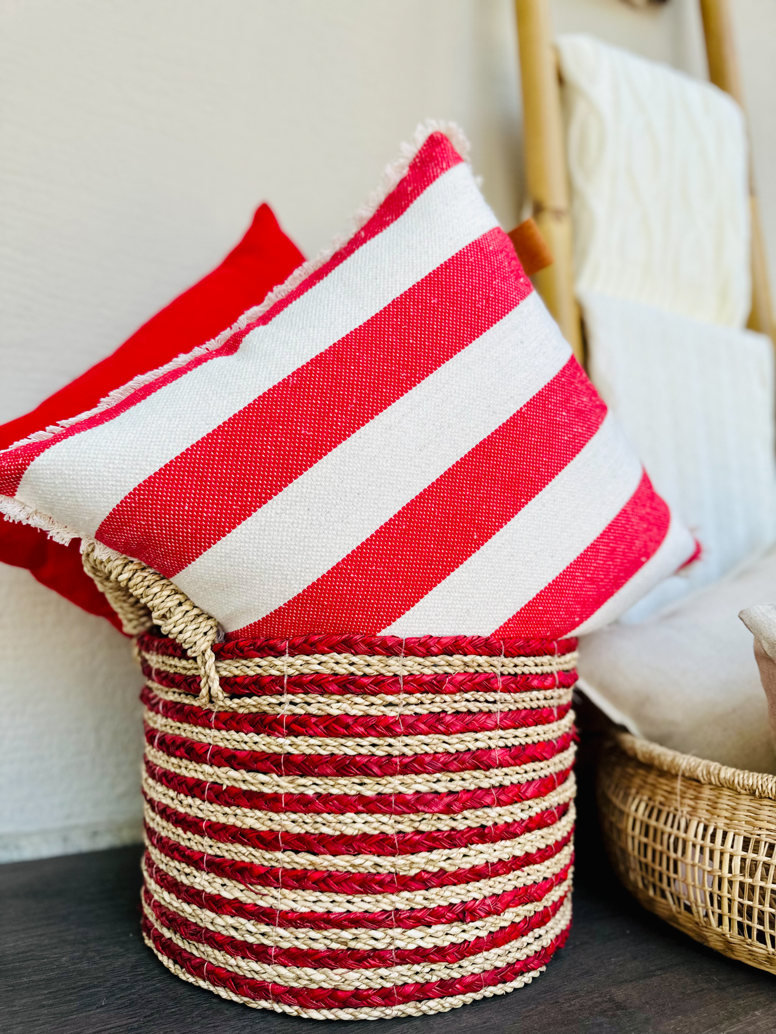 O Cesto Joatinga é uma peça encantadora que combina funcionalidade e estilo. Com suas cordas listradas em tons de palha e vermelho, este cesto de 34 cm de diâmetro x 32 cm de altura adiciona um toque vibrante à sua decoração. Ideal para armazenar mantas, revistas ou objetos diversos, o Cesto Joatinga é uma opção versátil que complementa qualquer ambiente com elegância e praticidade.