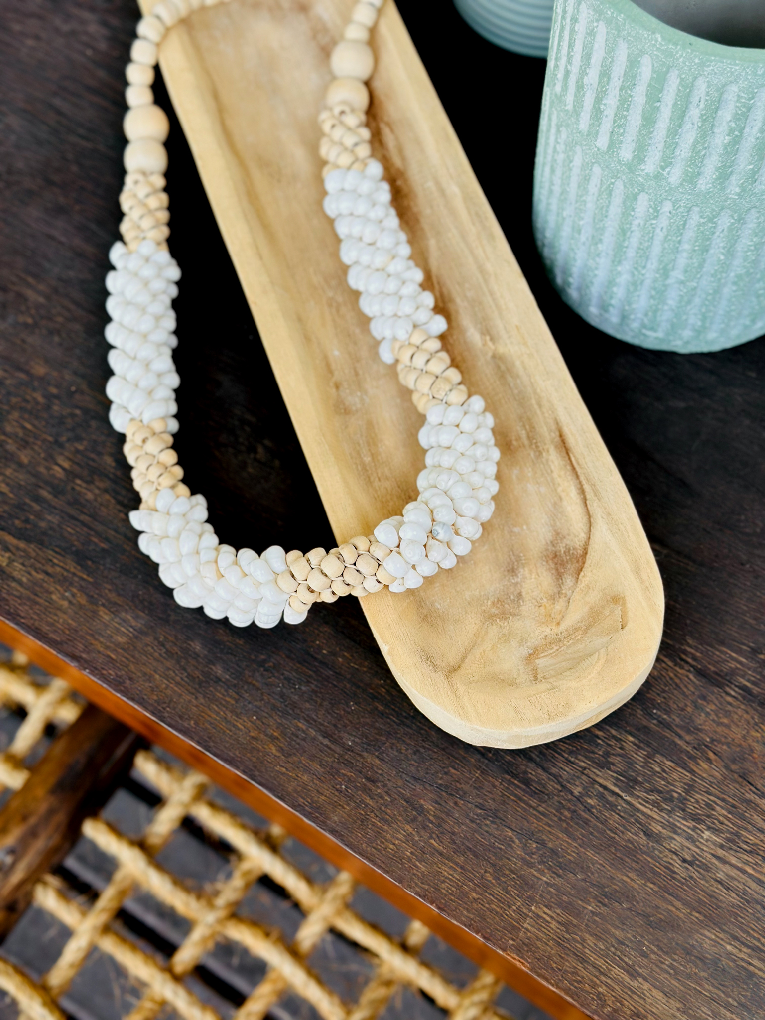 O Colar Iemanjá é uma peça encantadora confeccionada com continhas de madeira e conchas, trazendo consigo a essência natural da divindade das águas. Com um design cuidadosamente elaborado, este colar é mais do que uma peça decorativa; ele adiciona um toque único e charmoso à sua decoração.