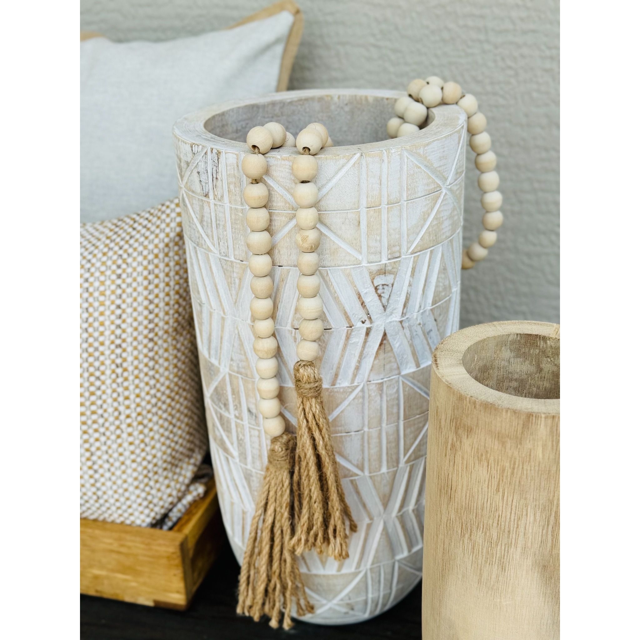O Colar Juiriti é uma peça super charmosa, confeccionada com contas de madeira. Possui como acabamento um tassel de corda em cada ponta. Com um design natural, ele pode ser usado amarrado em vasos, em cima de um livro e como mais sua imaginação permitir; adicionando um toque único e charmoso à sua decoração.
