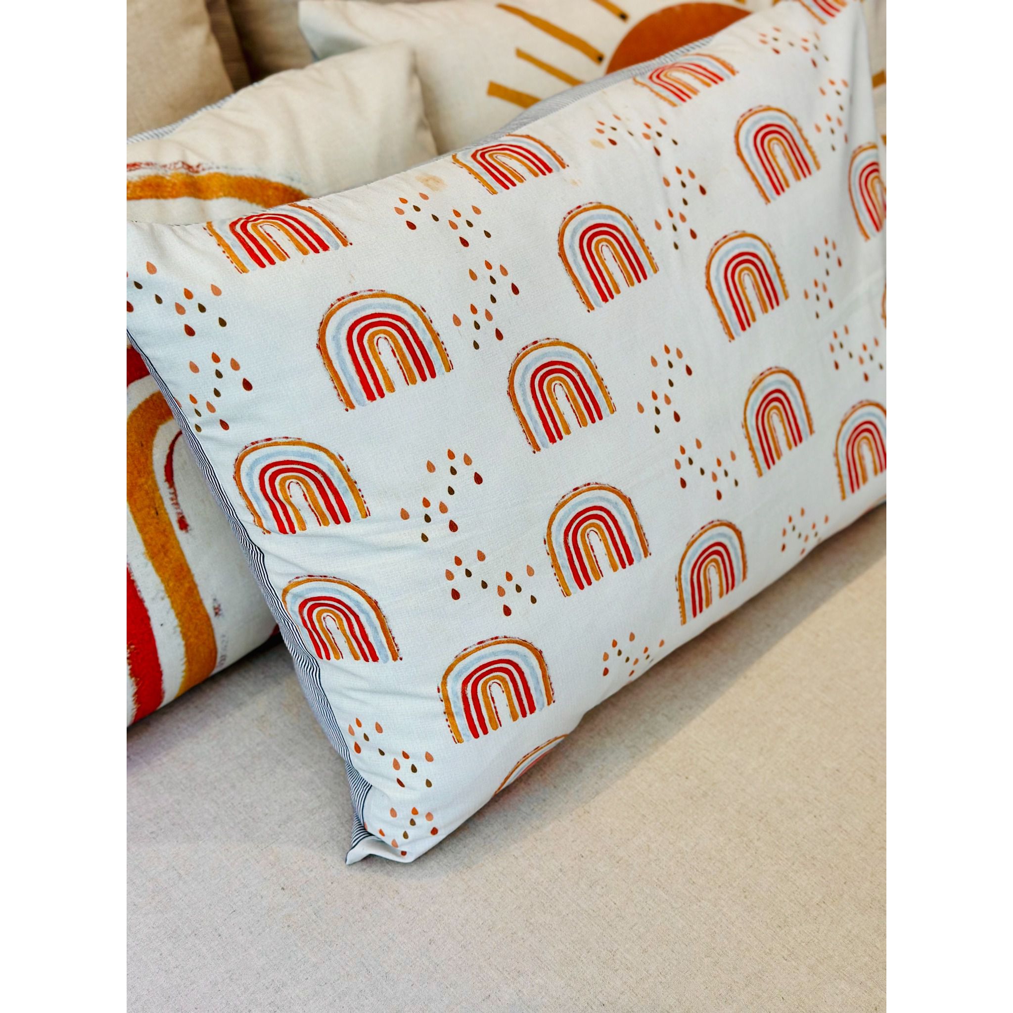 A Fronha Arco-Íris, com estampa da Milk Studio, é uma adição encantadora para transformar as noites de sono dos seus pequenos. Com medidas de 65 x 45 cm e uma estampa única em fundo clarinho, apresenta desenhos delicados de arco-íris, proporcionando um toque de alegria e modernidade ao ambiente.
