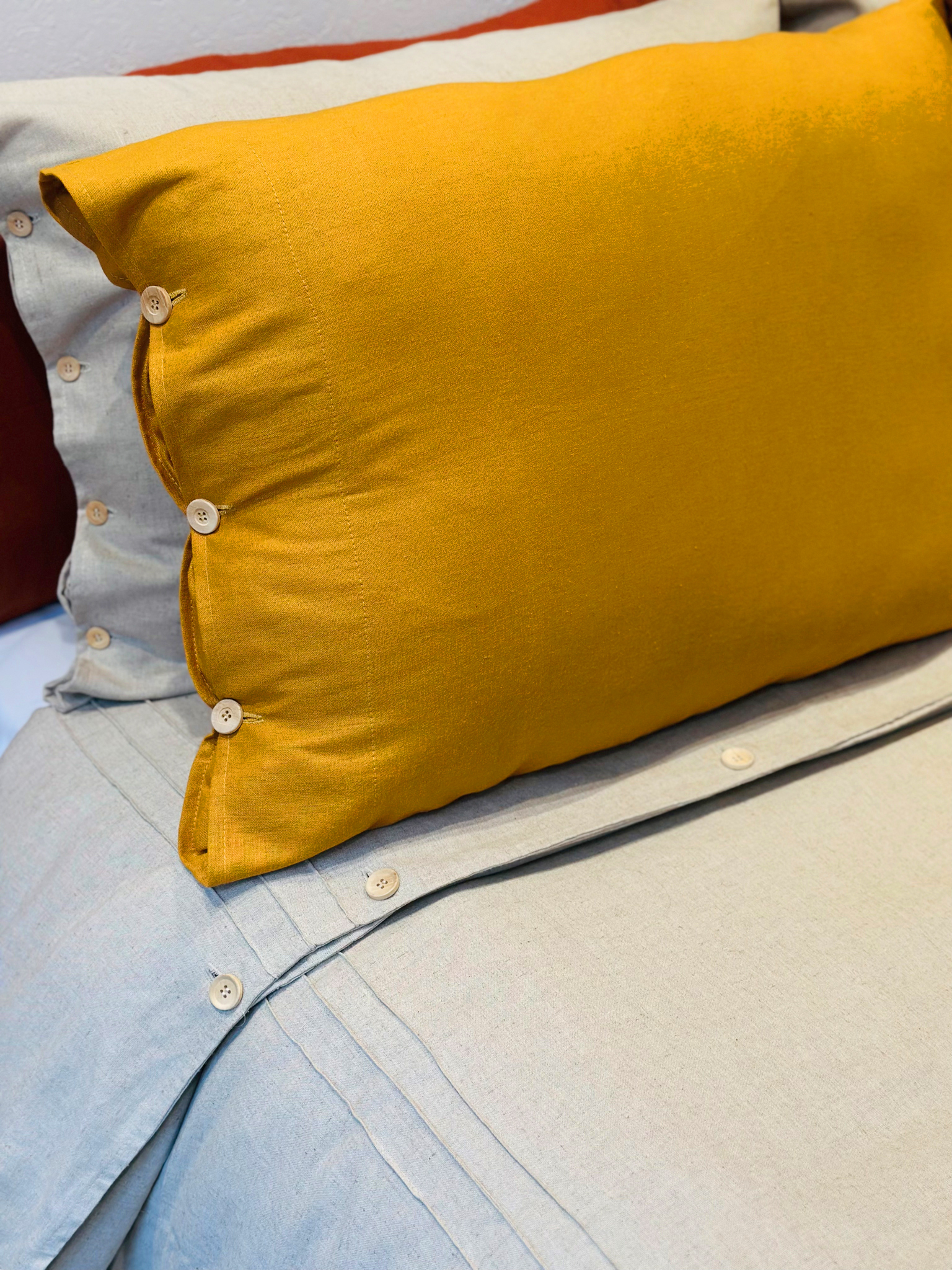 As Fronhas Lili, confeccionadas em linho mostarda de alta qualidade, são o equilíbrio perfeito entre elegância e conforto. Seu design exclusivo e os botões em madeira natural adicionam um toque rústico encantador ao seu quarto. Com medidas de 50 x 70cm, esse conjunto de duas fronhas complementa uma variedade de estilos de decoração, permitindo que você desperte sua criatividade e personalidade na decoração.