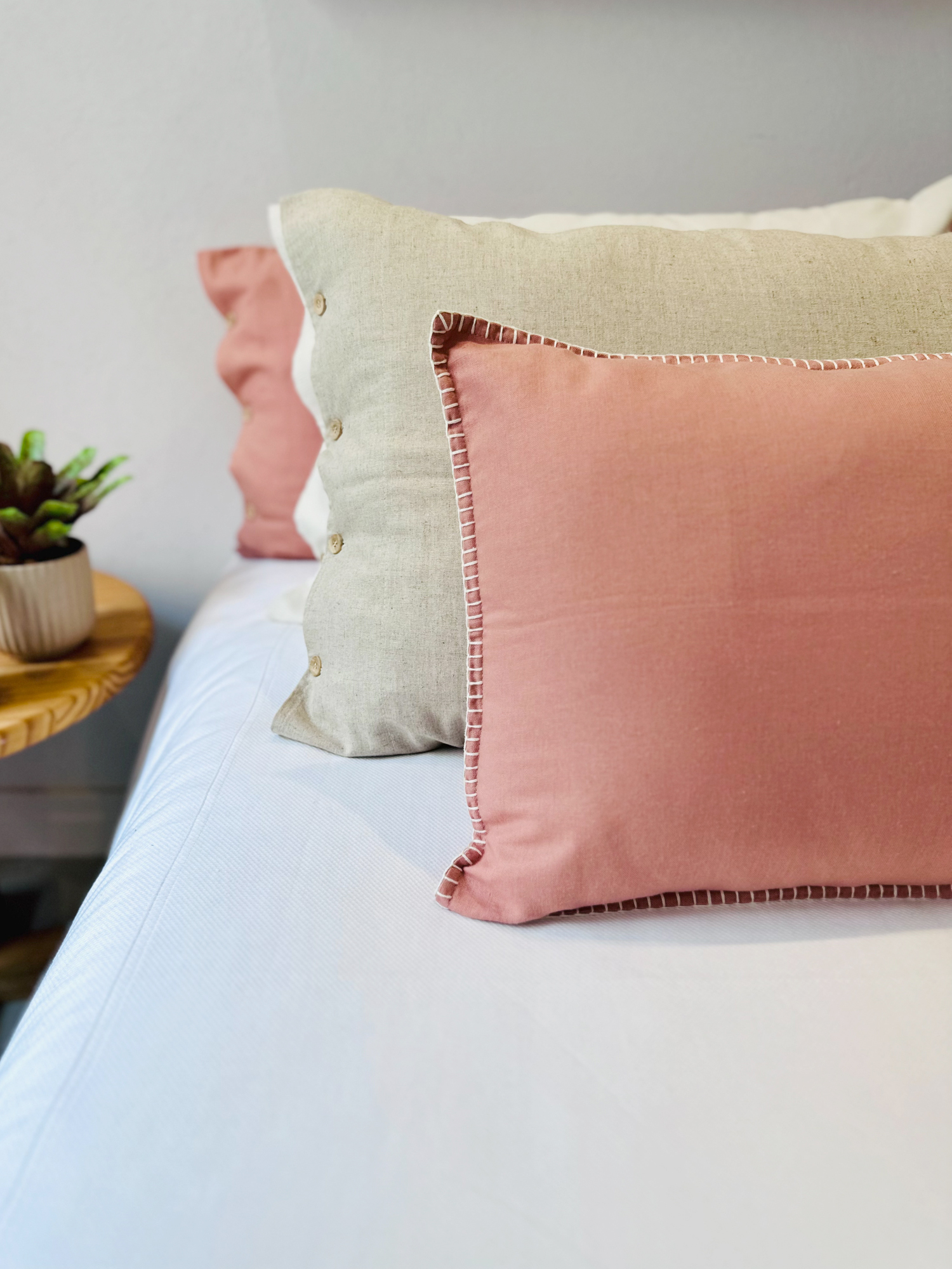 Inspirada na beleza espanhola, a almofada Maiorca se destaca com suas medidas de 60 x 40cm. Confeccionada em linho rosê, sua tonalidade romântica traz delicadeza e suavidade pra qualquer decoração. Os detalhes em ponto palito adornam suas bordas, trazendo elegância pro ambiente.