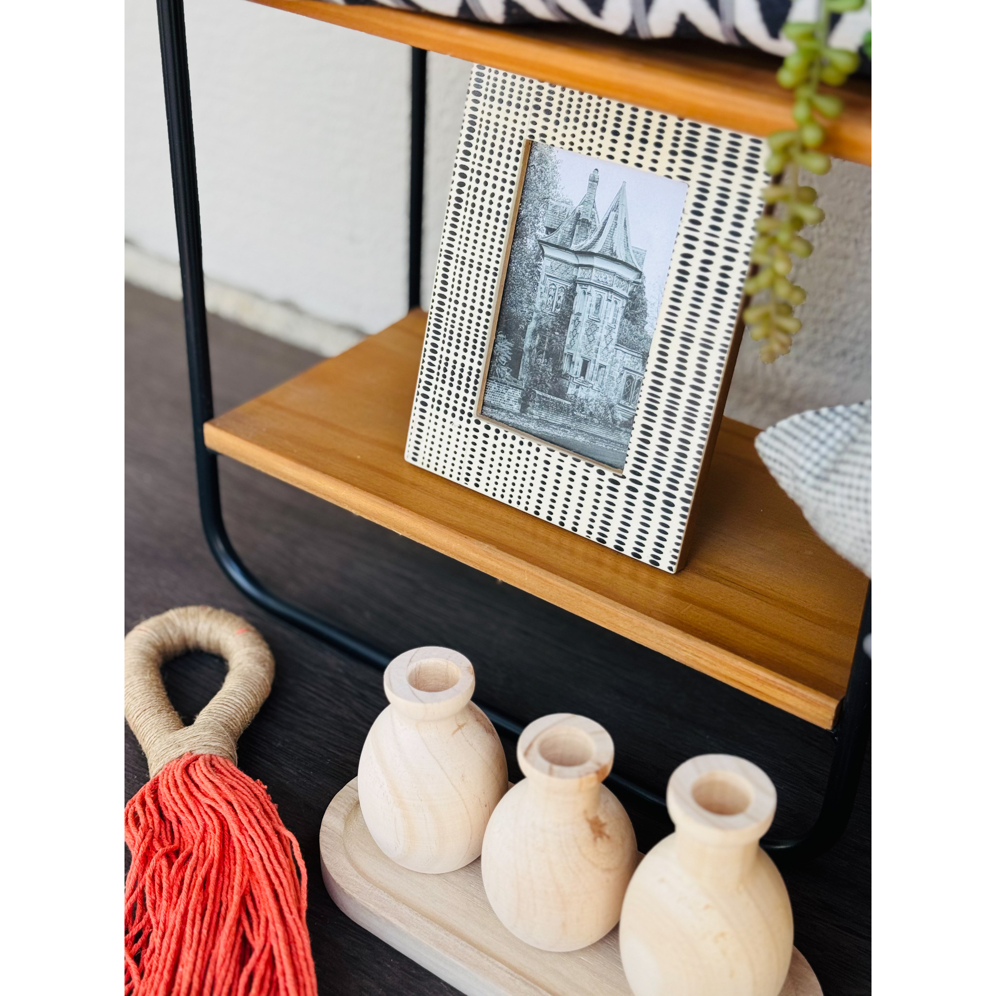O porta-retrato Marrakech, confeccionado em osso com uma elegante padronagem em preto e branco, é uma peça que combina o estilo étnico com um toque contemporâneo. Ideal para fotos de 10 x 15 cm, sua moldura texturizada acrescenta sofisticação e autenticidade ao ambiente. Perfeito para destacar memórias especiais, este porta-retrato traz um charme exótico e atemporal, ideal para estantes, aparadores ou mesas.