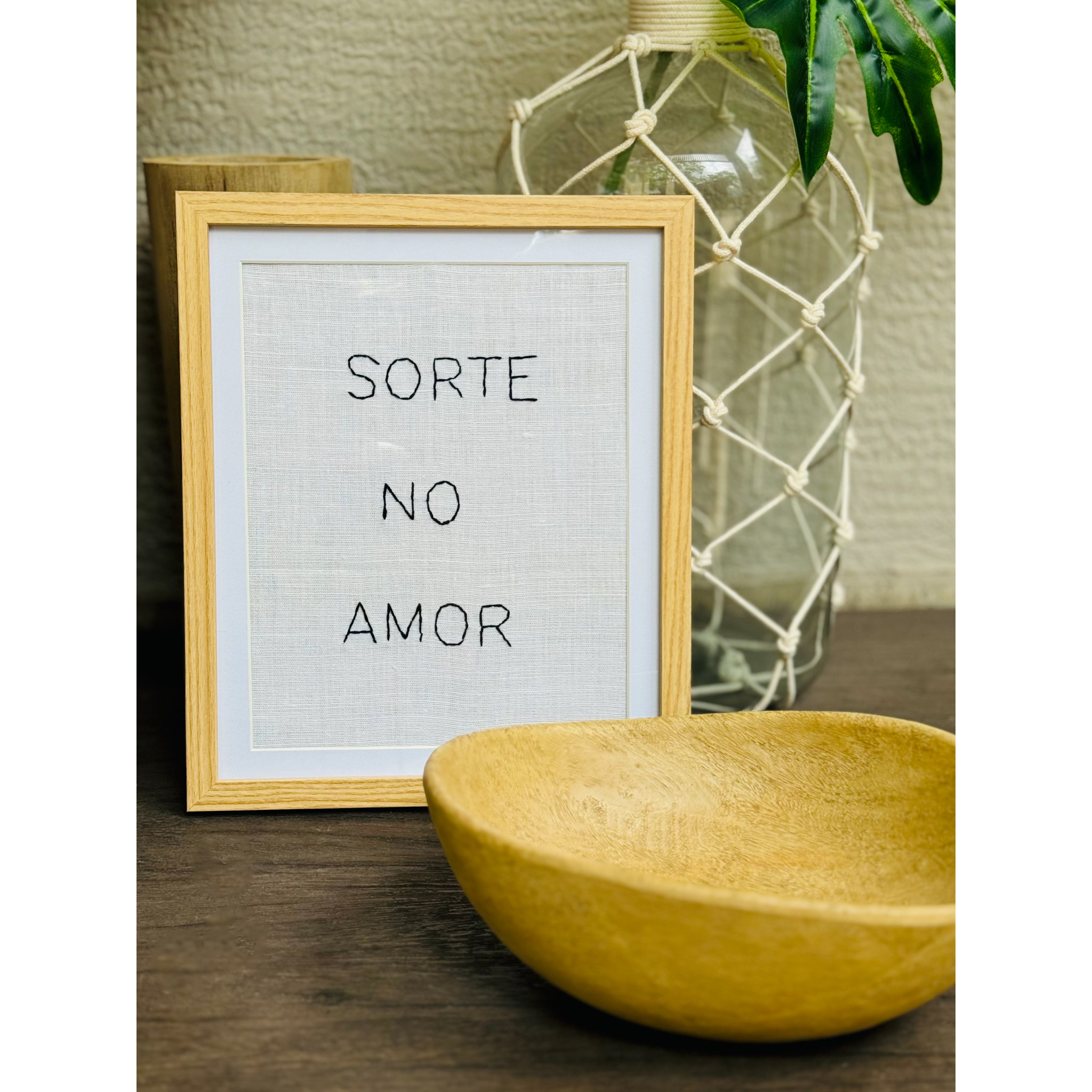 O Quadrinho "Sorte no Amor" é uma expressão encantadora de romantismo. Emoldurado delicadamente em um porta-retrato de moldura em madeira, apresenta um linho bordado à mão com a inspiradora expressão "Sorte no Amor". Com medidas de 20 x 25 cm, esta peça é um tributo à delicadeza do trabalho artesanal, acrescentando uma pitada de amor e charme ao seu ambiente.