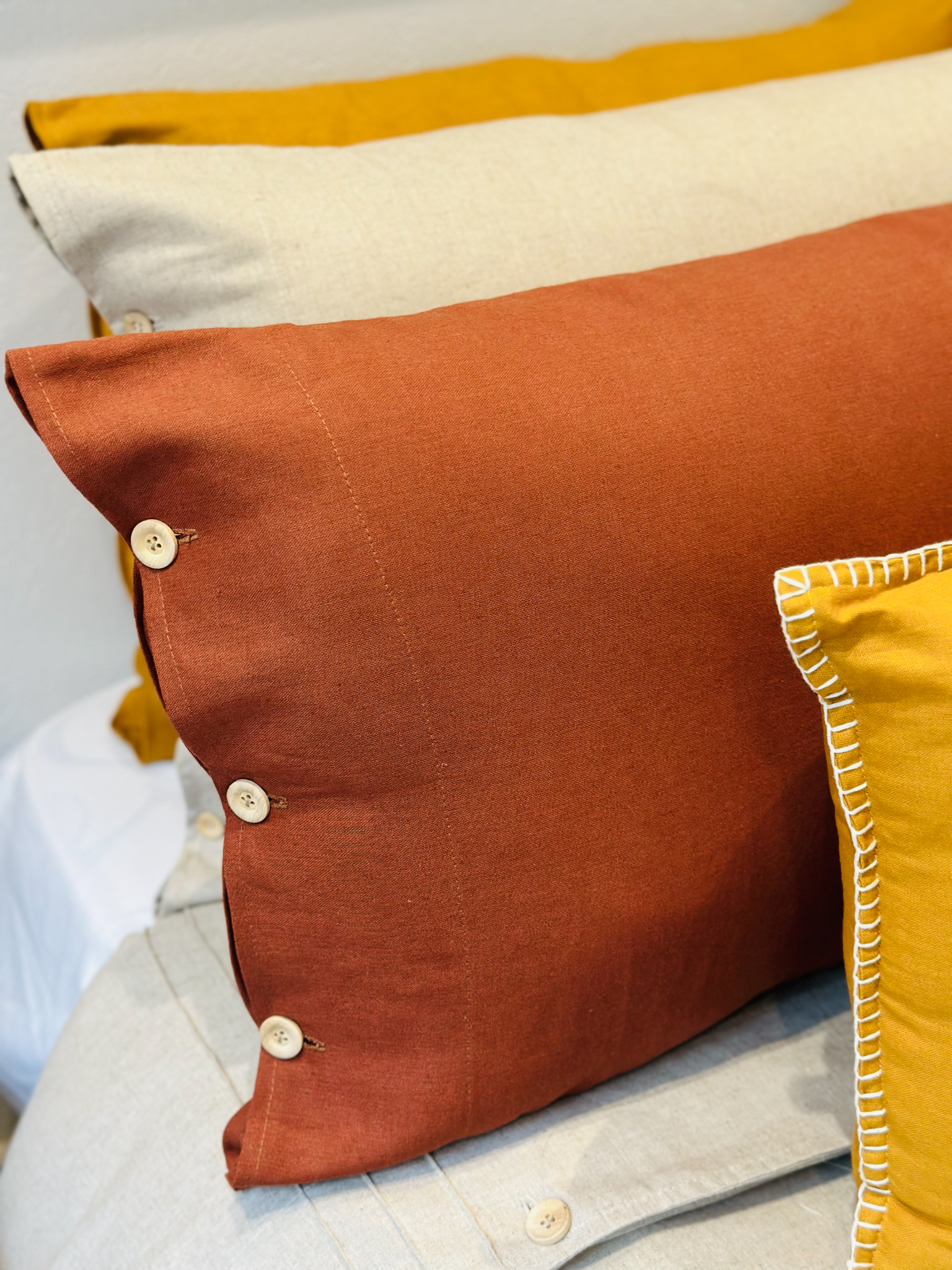 As Fronhas Lili, confeccionadas em linho telha de alta qualidade, são o equilíbrio perfeito entre elegância e conforto. Seu design exclusivo e os botões em madeira natural adicionam um toque rústico encantador. Com medidas de 50 x 70cm, esse conjunto de duas fronhas complementa uma variedade de estilos, permitindo que você desperte sua criatividade e personalidade na decoração.