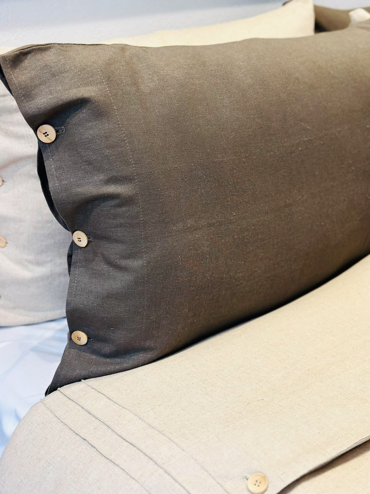As Fronhas Lili, confeccionadas em linho em tom marrom, são o equilíbrio perfeito entre elegância e conforto. Seu design exclusivo e os botões em madeira natural adicionam um toque rústico encantador e uma sensação de proximidade com a natureza. Com medidas de 50 x 70cm, esse conjunto de duas fronhas complementa uma variedade de estilos, permitindo que você desperte sua criatividade e personalidade na decoração.