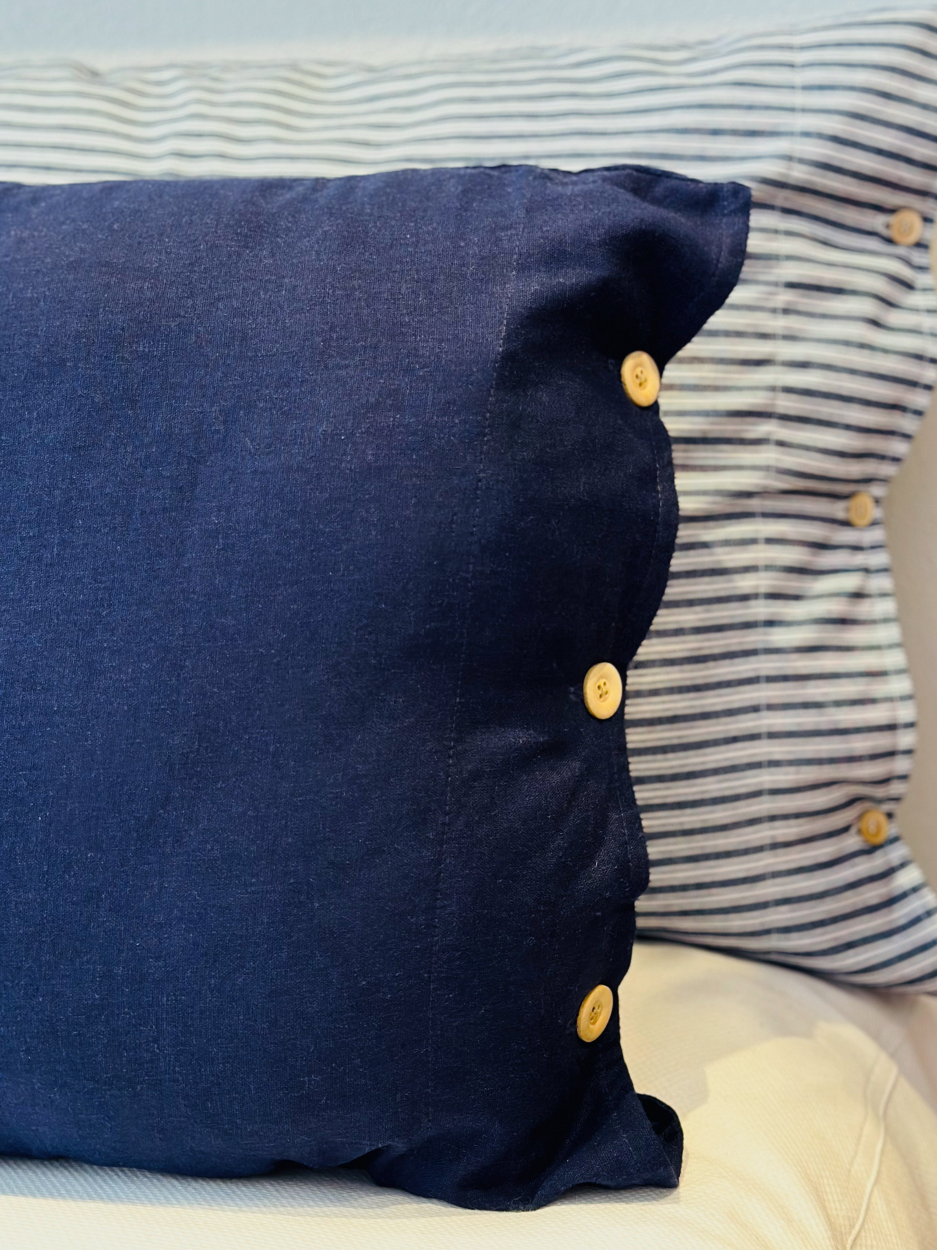 Os travesseirões de apoio Livia são o toque perfeito para seu conforto e estilo. Com medidas de 45 x 90cm, este conjunto inclui dois travesseiros e suas capas, proporcionando o suporte ideal para noites de sono tranquilas e um descanso merecido. Suas capas, confeccionadas em linho marinho, combinam elegância com aconchego, e são fechadas com botões de madeira, adicionando um toque natural e sofisticado à sua cama.