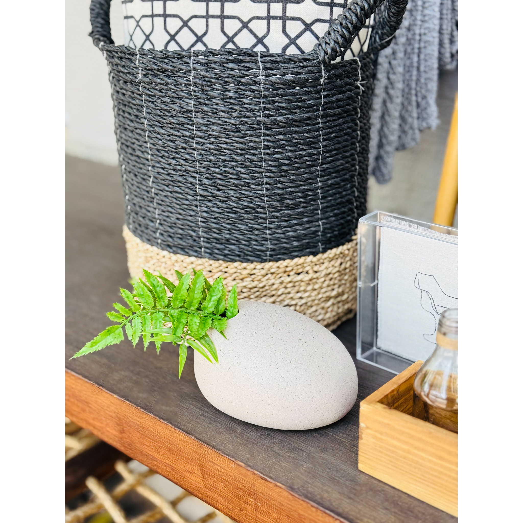 O vaso Pebble, com seu formato orgânico e acabamento em cerâmica fosca, traz um design minimalista e natural, perfeito para adicionar um toque de modernidade ao ambiente. Inspirado nas formas suaves das pedras de rio, este vaso é ideal para exibir pequenas plantas ou folhagens. Sua simplicidade elegante combina facilmente com diversos estilos de decoração, sendo uma peça versátil para qualquer cômodo da casa. Medida aproximada: 14x13x7cm